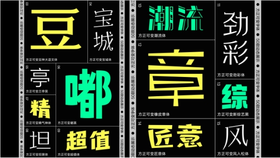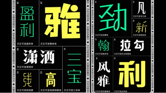可變字體技術(shù)是字庫技術(shù)的最新熱點(diǎn),它允許單個(gè)字體文件同時(shí)支持多個(gè)字體形態(tài),實(shí)現(xiàn)單軸或者多軸設(shè)計(jì)空間,讓設(shè)計(jì)師獲得前所未有的自由度和操作上的便利性,以及更小體積的字體文件與更快的響應(yīng)速度。方正字庫緊隨全球技術(shù)趨勢,本次大會(huì)推出了方正可變蘭亭黑、方正可變悠黑、方正可變悠宋、方正可變風(fēng)雅楷宋、方正可變忠義宋、方正可變高原明朝體、方正可變嘟黑、方正可變拉勾標(biāo)題體、方正可變鐵線黑、方正可變絲帛體、方正可變雅珠體、方正可變新綜藝黑、方正可變創(chuàng)黑、方正可變豆神大語文體等50款中文可變字體產(chǎn)品,可以滿足創(chuàng)意者各種不同的需要。