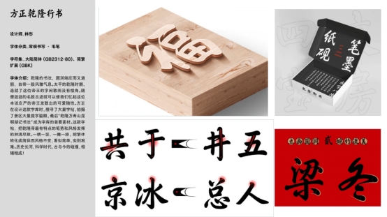 隨后,方正字庫字體設(shè)計(jì)師楊龍龍代表設(shè)計(jì)團(tuán)隊(duì),分享了工程正在開發(fā)中的8款字體:方正毛公鼎金文、方正馬王堆帛書、方正禮器碑隸書、方正張遷碑隸書、方正王羲之行書、方正歐陽詢楷書、方正李陽冰篆書、方正歐陽中石行書,將在今年上線。