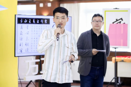 ▲字體設(shè)計(jì)單元評委代表汪文公布并點(diǎn)評獲獎(jiǎng)作品