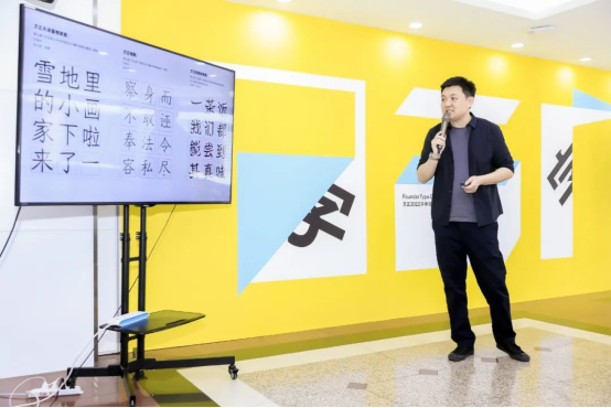 ▲字體應(yīng)用單元評委代表黑一烊公布并點(diǎn)評獲獎(jiǎng)作品